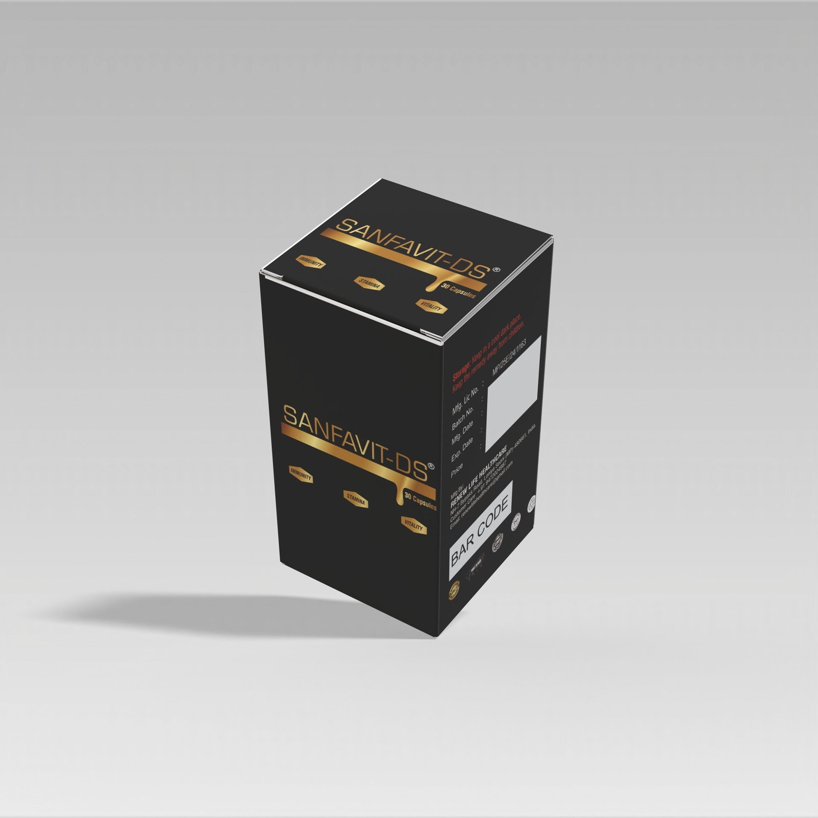 Shelf Life and Special Conditions for Storage: SANFAVIT-DS® CAPSULE is an Ayurvedic medicine; its shelf life is 3 years from the date of manufacture. It should be stored in a cool, dry place, should be proper & tightly caped and protect from sunlight.